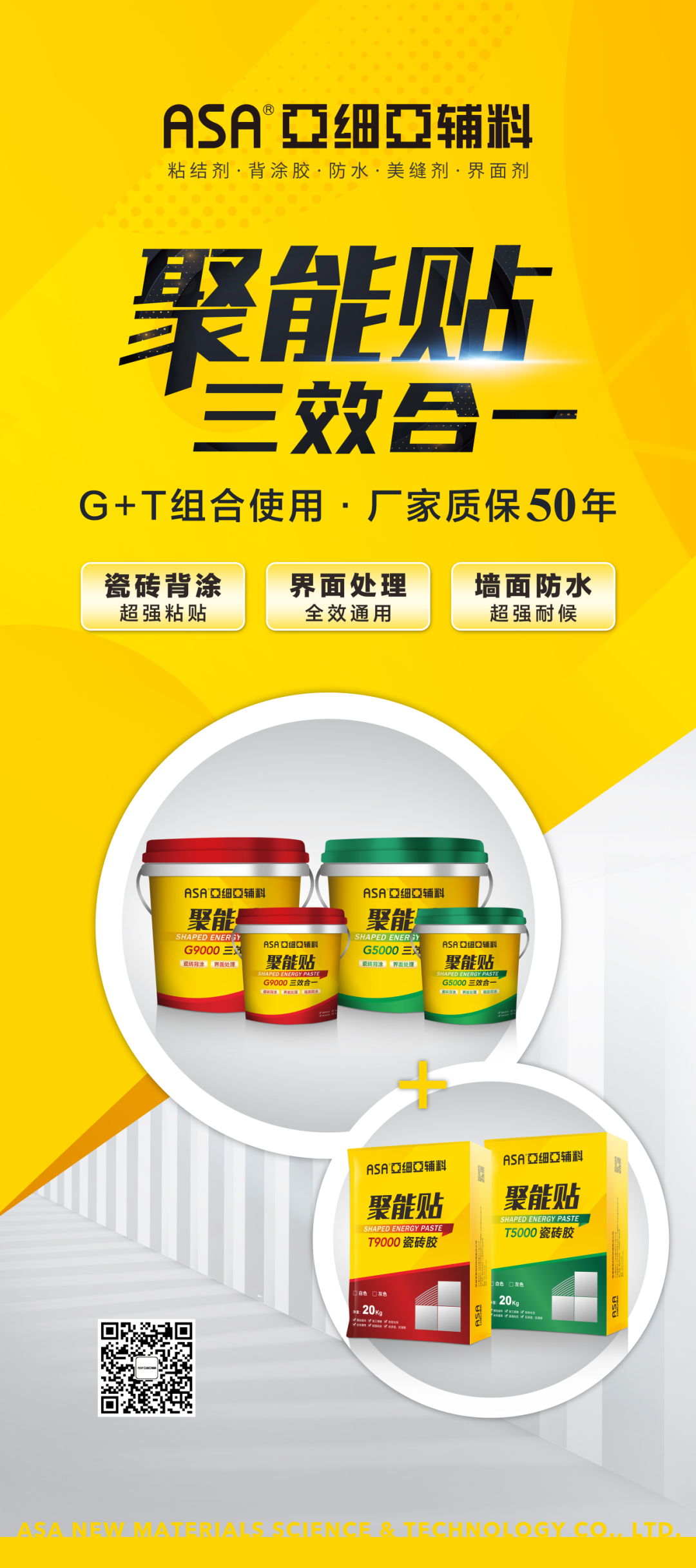 室內外瓷磚鋪貼,亞細亞聚能貼全效通用。在性能上,它的強度高于普通單組份瓷磚背涂膠的2-5倍之多,輕松滿足低吸水率、大規格瓷磚、仿古磚、大理石、花崗巖等產品鋪貼。除此之外,這款產品具備瓷磚背涂、界面處理、墻面防水三效合一,即刷即貼,省時高效。搭配聚能貼瓷磚膠,使用效果更佳。嚴格遵守亞細亞施工流程,G+T組合使用質保可達50年。